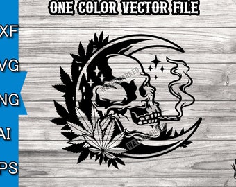 420 Smoking Skull And Moon Svg 420 Svg Marijuana Smoking Etsy